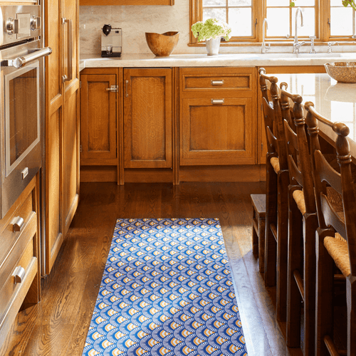 I bought the Fugu Blue area rug for the entryway. After the 2026 Blizzard, I needed a rug that was long enough to wipe shoes without sliding around the hardwood floors. I also needed enough rug real estate that people could take off shoes without tracking snow and salt over the floors. This rug arrived right on time. I am glad that I bought two.