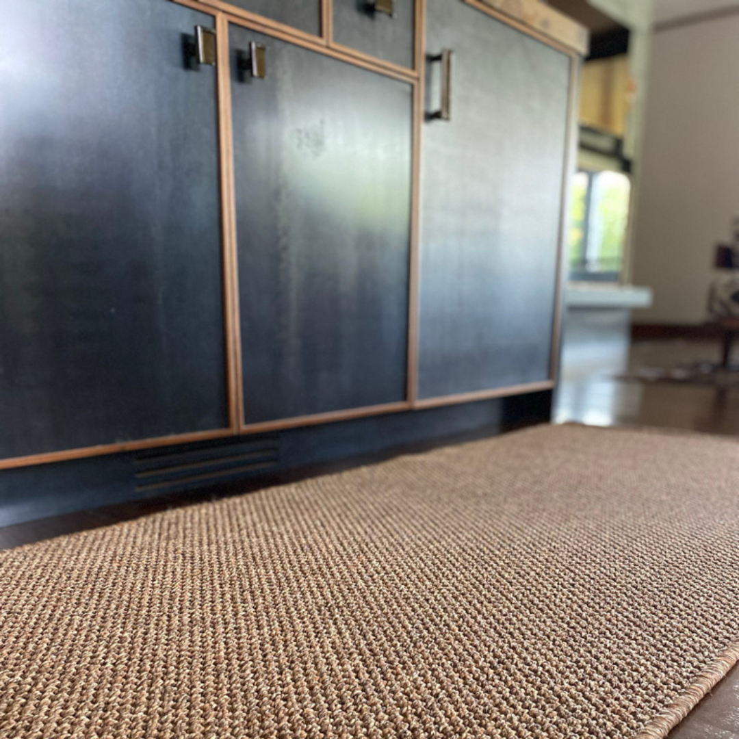 Similar to adding contrast through lighter colors, you can leverage natural elements to balance out your moody color palette. That can be rich woods in your floors or furniture, luscious houseplants like a fiddle leaf fig or monstera, or a woven aesthetic underfoot. The Innerweave comes in a variety of patterns and colors that can bring a hand-woven look to your space while being easy to clean and maintain.
