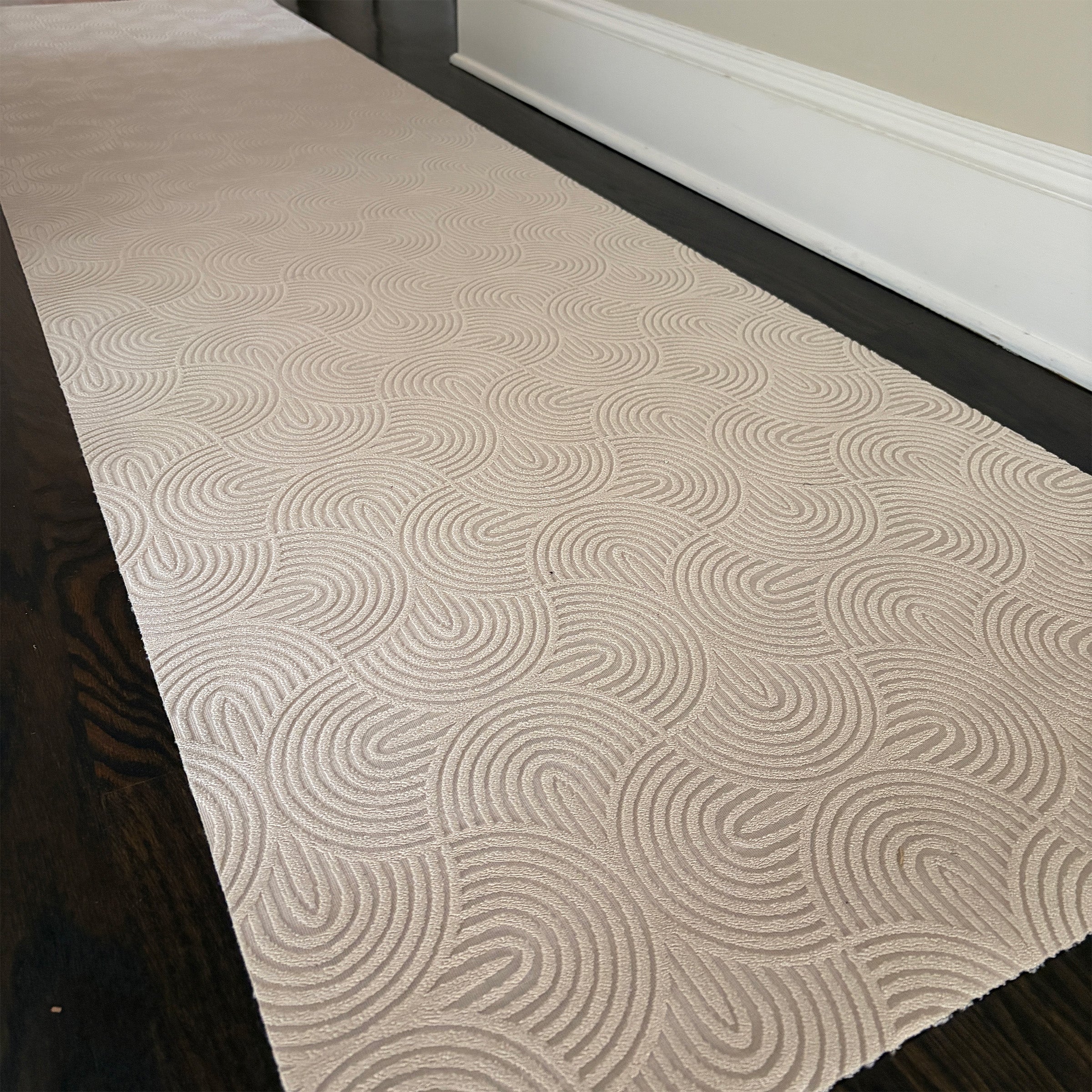 With an incredibly minimal pile height, The Insider line can fit under most doors easily. But it never hurts to check! The height (or thickness) is 1/8''. We recommend a door clearance of 1/4”.